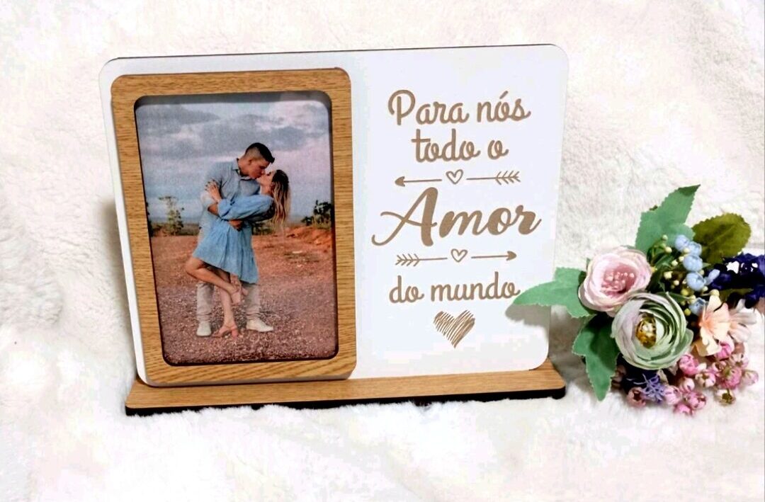 Moldura com foto Dia dos Namorados, em Mdf Branco e Mdf Carvalho